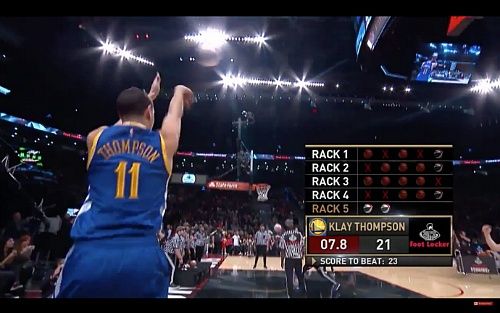 암튼 덩크대회만큼이나 관심 넘치는 3점슛 컨테스트는 예상대로 2파전이었다. 먼저 커리가 23점으로 우승권에 가까운 안정적인 점수를 올렸고 약간의 부담을 안을만한 점수를 두고 탐슨 출격!!! 4번째 지점인 45도 각도까지의 점수는 17점으로 똑같았던 상황, 여기서 커리는 3개를 성공시켰고 탐슨이 4개 이상 넣는다면 우승인데 탐슨은 긴장할만한 이 상황에서 퍼펙트 슈팅을 선보이며 5개 연속 머니볼을 꽂아 넣는 최고의 슈팅을 선보이며 동료 커리를 제치고 새롭게 3점슛 우승을 거머쥐는 짜릿한 순간을 만끽했다.