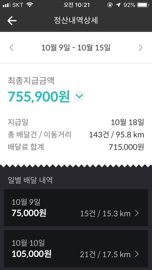 위에 정산내역 사진을 보시면 이동거리