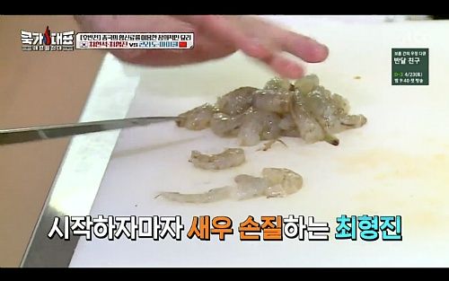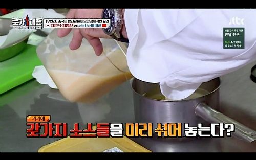 그런데 이번 주 중국팀들은 실력에 그렇게도 자신이 없던 것인지 모든 부분에서 최하의 매너를 보여준다. 호텔식당주방에 마요네즈도 없고 딤섬을 만드는 중력분도 없고 와인도 없단다. 모든 것이 없다. 왜??? 우리가 이기기 위해선 너희들이 요구하는 재료는 없다. 우리 쓸 것만 준비해놨다. 새우도 너네는 쪼매난 거 쓰고 우린 왕새우 쓸거다. 왜냐 우리가 전반을 졌거든 그래서 후반엔 우리가 이기게 모든 재료도 월등하게 쓸 거다. 매너?? 그게 뭔데 난 승부욕이 강하거든 그래서 소스도 미리 섞어 놓을 거고 계란도 깨 놓고 관자도 익혀놓을거다.