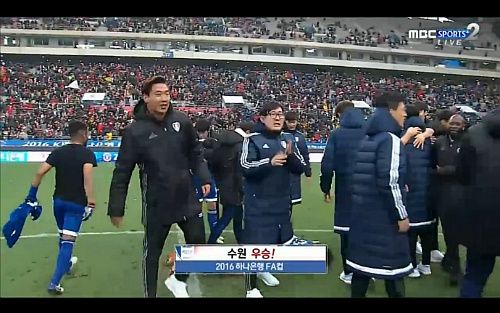 방금 전 끝난 경기 1차전 수원의 2대 1 승리, 2차전 후반 막판까지 1대1 무승부 중에 서울의 극적인 동점골로 연장전으로 돌입 라이벌전답게 드라마같은 승부를 보여주고 또 그 마침표까지 드라마중의 드라마를 만들며 수원 우승!