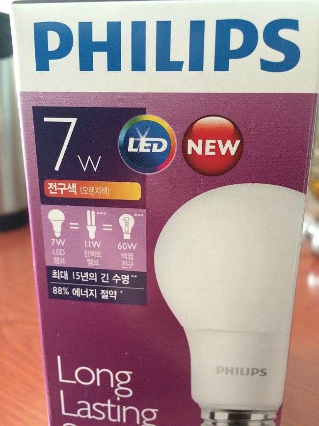 그래도 나름 몇천원 적게 나온걸 보니 LED 조명의 요금절약이 효과가 있는 건 맞다. 형광등을 교체하고 이번엔 베란다와 현관 그리고 화장실에서 썼던 60W 백열등에서 7W LED 전구로 교체했다. 가격도 인터넷으로 구입하니 굉장히 저렴해서 전기세 절약으로 전구값은 금방 뽑아낼 수 있을 것 같다.