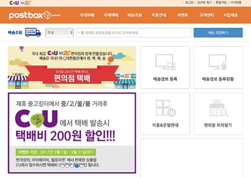 편의점 택배 사용 시 하나 더 꼭 알아두면 좋은 것이 이 포스트박스라는 사이트다. 페이지에 들어가면 CU, GS25등이 보인다. 이 두 편의점에서 택배를 시간에 상관없이 접수받다는 것 그리고 제휴서비스를 통해 200원 할인까지 해 준다.