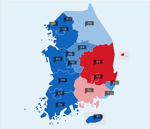 여전히 극복하기 힘든 대구경북경남의 세 지역을